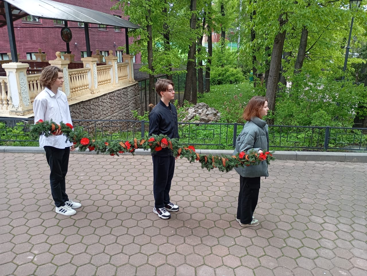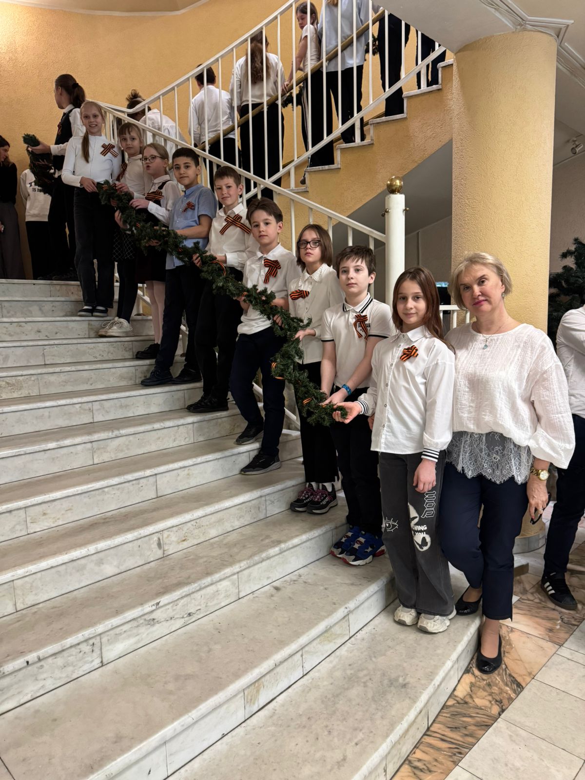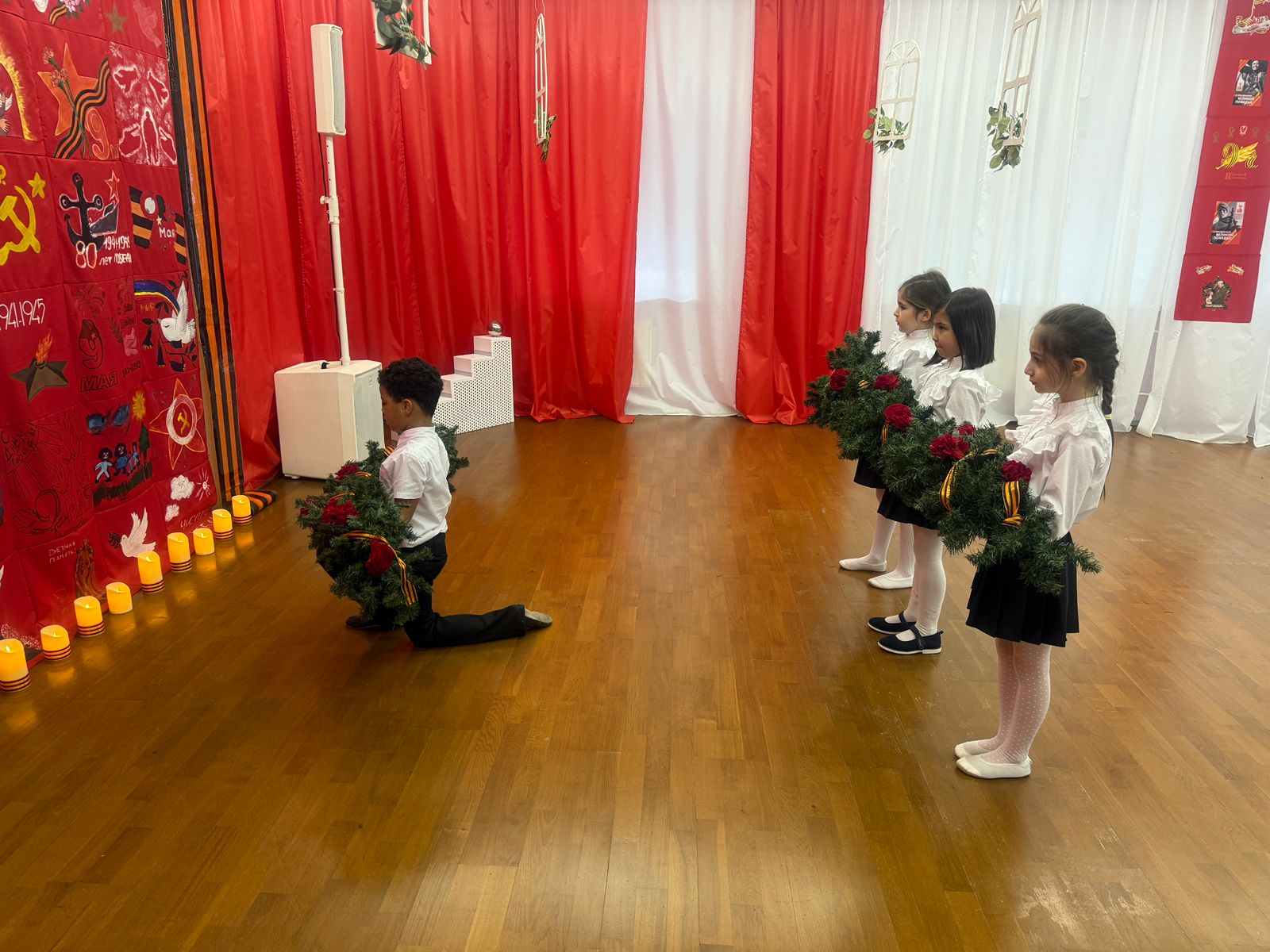 Мы продолжаем комплекс мероприятий, посвященных этой знаменательной дате. Прошла традиционная общешкольная акция "Гирлянда славы". Воспитанники дошкольных учреждений, учащиеся с 1 по 11 класс возложили гирлянды к мемориальным местам во всех корпусах школы.